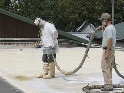 - Eco-Friendly – Because the spray foam is applied over your existing membrane, you will not be adding any materials to landfills, reducing waste! The materials used in the SPF application are low-VOC emitting, have zero ozone-depletion potential, and are free from CFCs.